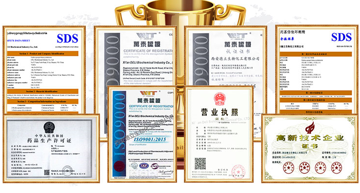 Xi'an Deli Biochemical Industry Co., Ltd என்பது ஒரு உயர் தொழில்நுட்ப நிறுவனமாகும். R&D, சைக்ளோடெக்ஸ்ட்ரின் உற்பத்தி மற்றும் விற்பனை மற்றும் அவற்றின் வழித்தோன்றல்கள். உலகெங்கிலும் உள்ள வாடிக்கையாளர்களுக்கு நிலையான தரம் மற்றும் நம்பகமான சேவையுடன் மருந்து உபகரணங்களை நாங்கள் வழங்குகிறோம்.