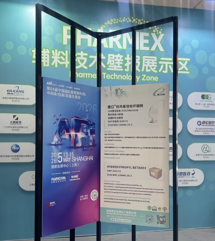 Xi'an Deli Biochemical Industry Co., Ltd. சோங்கிங்கில் நடைபெற்ற 2025 API சீனா கண்காட்சியில் பங்கேற்று, நிறுவனத்தின் முதன்மைத் தயாரிப்புகளைக் காட்சிப்படுத்தியது-ஹைட்ராக்ஸிப்ரோபில் பீட்டாடெக்ஸ் (HPBCD)மற்றும்Betadex Sulfobutyl ஈதர் சோடியம் (SBECD)- உலகளாவிய மருந்து மற்றும் இரசாயன தொழில் வல்லுநர்களுக்கு.