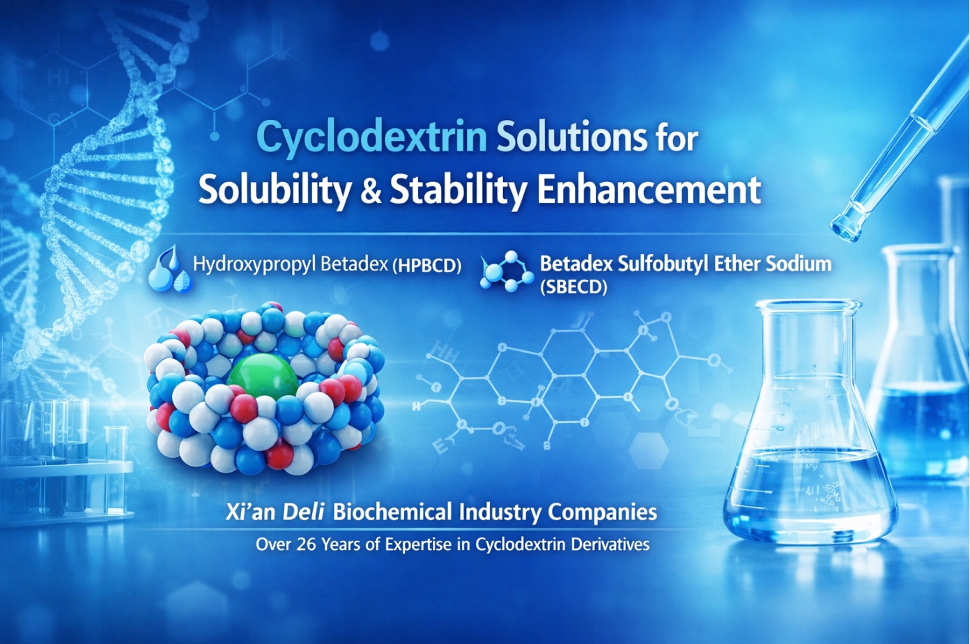 மோசமாக கரையக்கூடிய அல்லது வேதியியல் உணர்திறன் கொண்ட சேர்மங்களின் கரைதிறன் மற்றும் நிலைத்தன்மையை மேம்படுத்தும் திறனுக்காக சைக்ளோடெக்ஸ்ட்ரின்கள் பரவலாக அங்கீகரிக்கப்பட்டுள்ளன. அவற்றின் தனித்துவமான சுழற்சி மூலக்கூறு அமைப்பு காரணமாக, சைக்ளோடெக்ஸ்ட்ரின்கள் மற்றும் அவற்றின் வழித்தோன்றல்கள் மருந்து, இரசாயன மற்றும் தொடர்புடைய உருவாக்கம் துறைகளில் முக்கியமான செயல்பாட்டு துணைப் பொருட்களாக மாறியுள்ளன. அதிகரித்து வரும் தொழில்நுட்ப மற்றும் ஒழுங்குமுறை தேவைகளுக்கு பதிலளிக்கும் விதமாக, Xi'an Deli Biochemical அதன் முக்கிய சைக்ளோடெக்ஸ்ட்ரின் வழித்தோன்றல்களுக்கான தொழில்நுட்ப ஆவணங்கள் மற்றும் தயாரிப்பு ஆதரவை மேலும் செம்மைப்படுத்தியுள்ளது:ஹைட்ராக்ஸிப்ரோபில் பீடாடெக்ஸ் (HPBCD) மற்றும் பீட்டாடெக்ஸ் சல்போபியூட்டில் ஈதர் சோடியம் (SBECD).